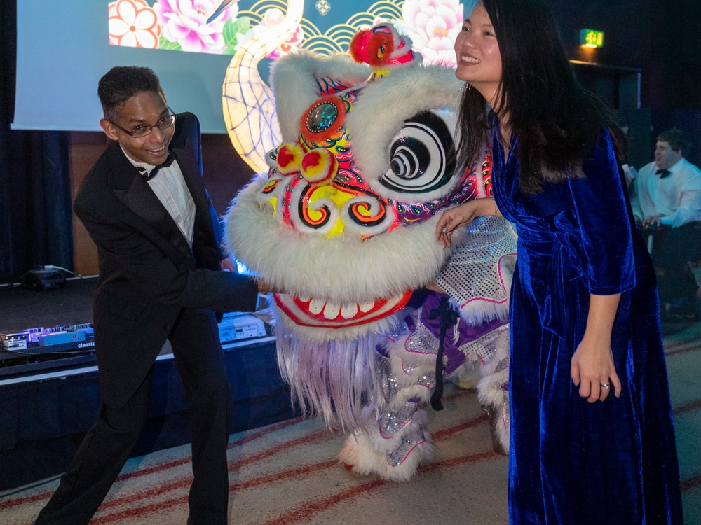 After a drinks reception, guests made their way to the ballroom which, thanks to the hard work of the Lily team, definitely deserved the ‘best dressed’ award. A massive shout-out to the team at Artpod Brighton, who worked miracles to dress the ballroom, with glittering decorations and finishing touches such as illuminated cranes and gorgeous table lanterns. Also a roaring success was the Chinese lion, which danced and writhed to the drumbeat while those bold enough posted their pledges into its gaping jaws.
